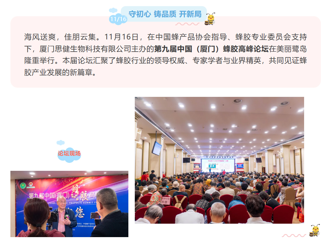 思健生物科技誠(chéng)邀您共赴廈門(mén)出席第九屆中國(guó)(廈門(mén))蜂膠高峰論壇:與蜂業(yè)權(quán)威面對(duì)面,洞見(jiàn)蜂膠國(guó)際新未來(lái)